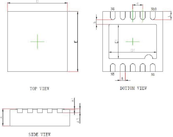 MG127管腳采用DFN10 封裝,芯片大小為3mm x 3mm
