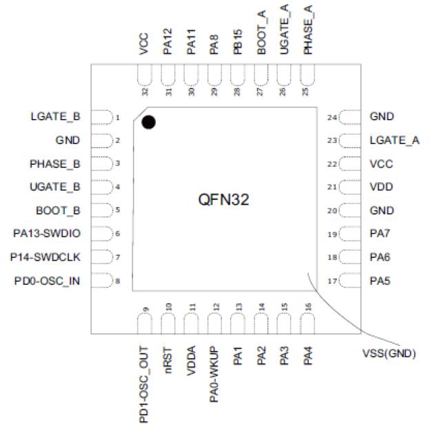 MM32SPIN120B內嵌兩組具備有自舉二極管的N通道半橋柵極驅動器,提供QFN32封裝形式,適合于單相永磁無刷電機和快速無線充電等多種應用場合。靈動微一級代理提供免費開發板測試及技術支持.